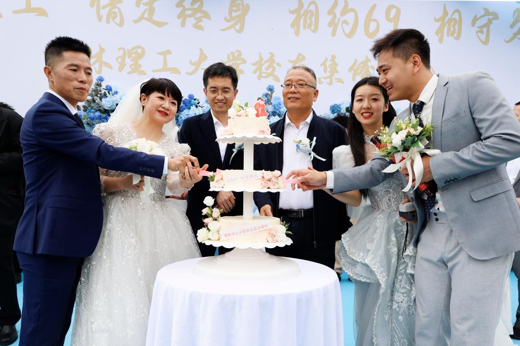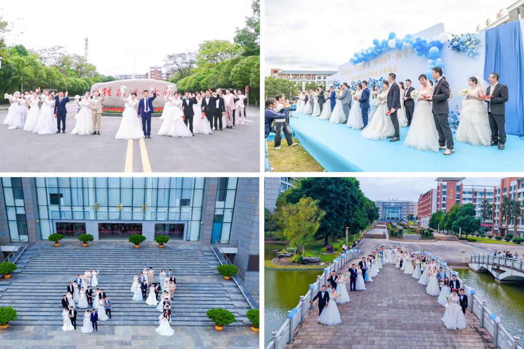本次活动作为学校建校69周年系列活动之一,受到广大校友的积极响应和踊跃参与,活动的成功举办受到校友师生的广泛好评。这场集体婚礼不仅是对母校69周年的深情献礼,更彰显了桂工人浓浓的家国情怀与浪漫底色。