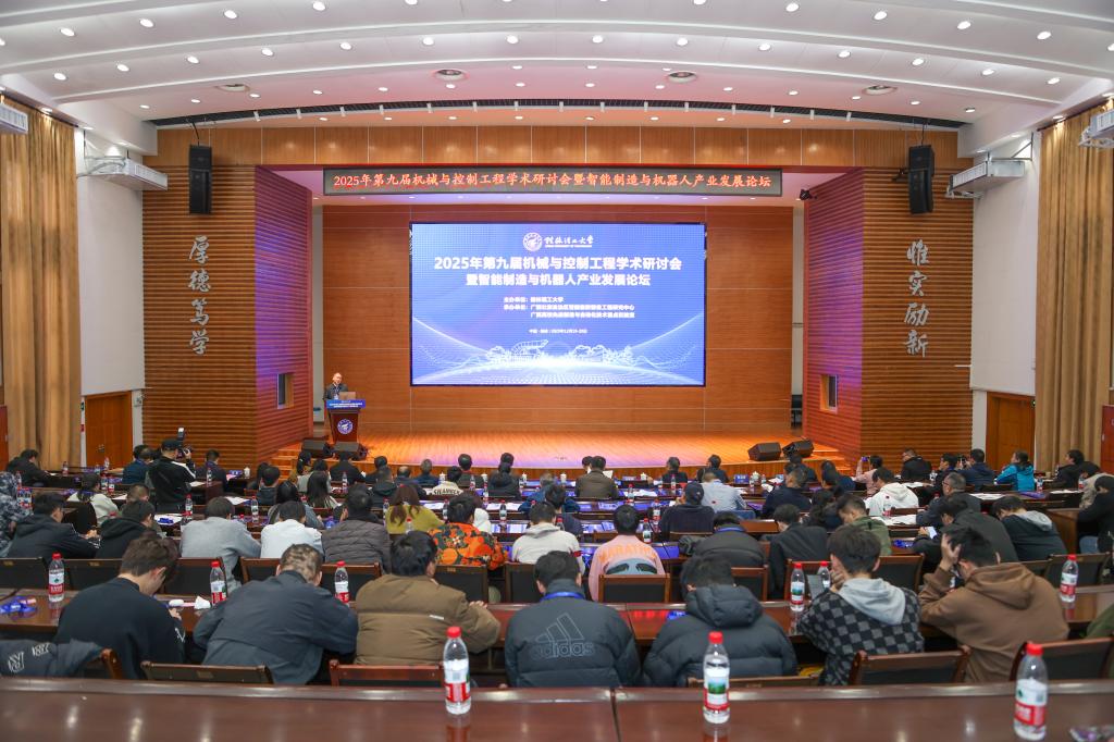 12月19日至20日,由Beat365官网主办,自治区智能橡胶装备工程研究中心、广西高校先进制造与自动化技术重点实验室共同承办的2025年第九届机械与控制工程学术研讨会暨智能制造与机器人产业发展论坛在桂林召开。学校党委常委、副校长唐壮东出席开幕式并致辞。柳州欧维姆机械股份有限公司党委书记、董事长黎睦汉出席论坛并作专题报告。广西柳工机械股份有限公司高级技术专家王松林等企业及科研院所代表、Beat365官网师生共计150余人参会。