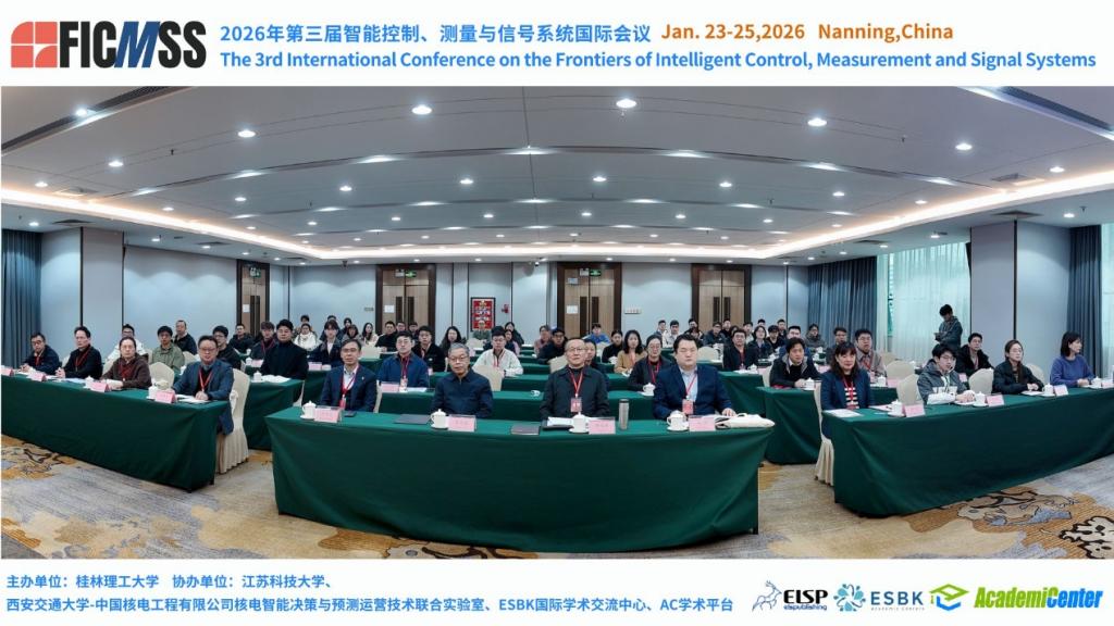 近日,由学校主办,南宁分校电气与电子工程学院承办,西安交通大学-中国核电工程有限公司核电智能决策与预测运营技术联合实验室、江苏科技大学、ESBK国际学术交流中心、AC学术平台协办的第三届智能控制、测量与信号系统国际会议(FICMSS 2026)在广西南宁顺利召开。来自国内外高校、科研院所及产业界的90多位专家学者、青年研究者齐聚绿城,分享前沿成果、研判技术趋势,推动智能控制、测量与信号系统的产学研深度融合。