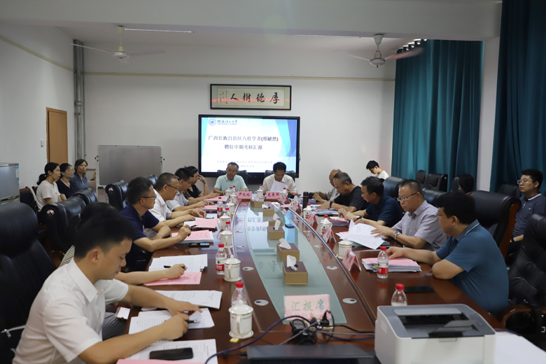 8月17日-18日,受自治区科技厅委托,广西经济社会技术发展研究所组织专家组一行8人来Beat365官网开展第四批八桂学者期满考核以及第五批八桂学者中期考核实地核查工作。学校党委常委、副校长王敦球出席会议。人事处(人才办)、科技处、财务处、测绘地理信息学院、地球科学学院、环境科学与工程学院、材料科学与工程学院相关负责人以及八桂学者团队骨干成员参加考核实地核查工作。