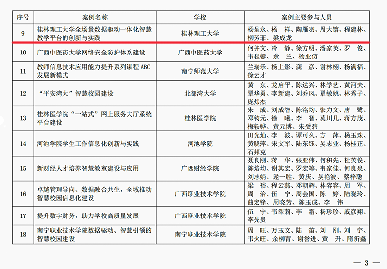 据悉 ,此次案例征集评选中,要求选题应是对高校教学、科研、管理、服务等业务和校园环境进行数字化建设,支撑各业务开展智能化应用,充分利用信息技术支撑学校教育教学、学习支持、教育管理与服务、教育评价等核心场景,在推广应用上已取得一定成效,富有特色,具有一定的示范的项目。此次全区45所高校报送了67个项目,共评选出35个优秀案例,其中荣获2个优秀案例的高校有6所。
