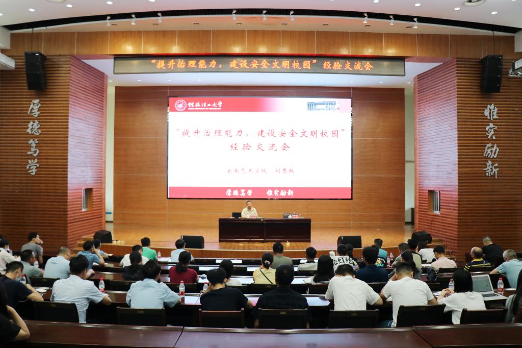 7月13日下午,学校邀请云南艺术学院保卫处处长、云南省省级平安校园考核组组长、云南省智慧校园建设总顾问、云南省政法委安全稳定专家刘恩权到Beat365官网作题为“提升治理能力,建设安全文明校园”的经验交流报告,学校党办校办、学工处、校团委、保卫处、资产处、后勤集团全体教职工,各二级学院党委副书记、学工组长、团委书记参加了本次经验交流会。