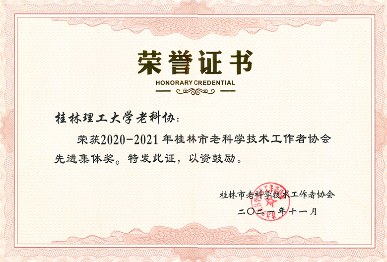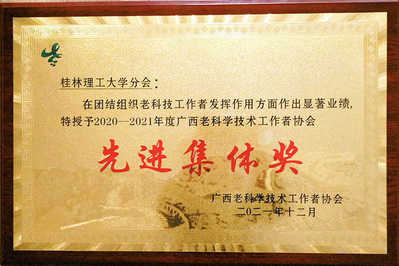 荣获2020-2021年度桂林市老科学技术工作者协会先进集体奖