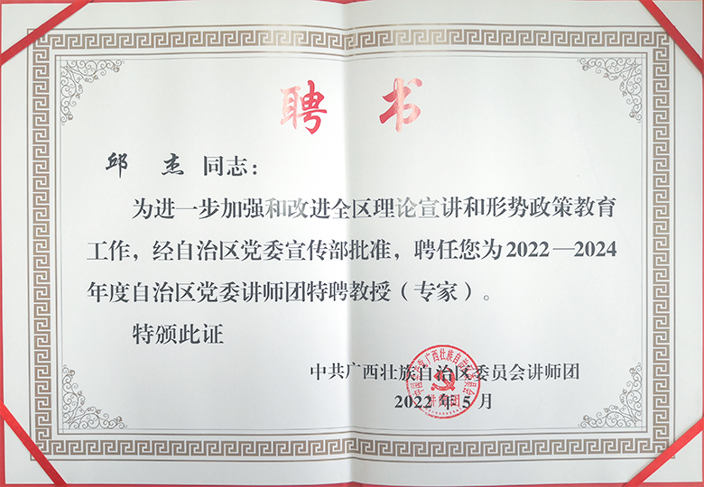 Beat365官网邱杰教授获聘2022—2024年度自治区党委讲师团特聘教授(专家)
