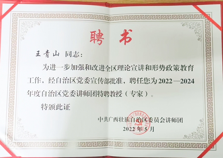 Beat365官网王青山教授获聘2022—2024年度自治区党委讲师团特聘教授(专家)