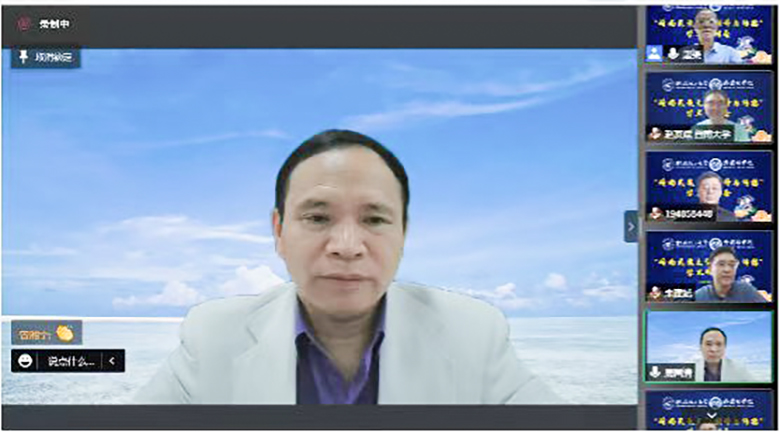 周国清在致辞中欢迎各位专家和与会者相聚云端,深度交流,共襄盛举。在主旨报告阶段,广西民族大学张旭教授以“关于广西翻译史研究的若干思考”为题作了报告,广东金融学院黄中习教授作题为“以民族典籍译介研究可视化分析方法探索”的报告,广东外语外贸大学陈多友教授作“对东亚汉字文化流变的相关探究”主题报告,暨南大学翻译学院赵友斌教授围绕“国家社科‘中华学术外译’相关项目的申报体会”作经验分享。四位专家的学术报告精彩纷呈,深入探讨了民族文化走向世界的学理、路径和策略,分享了各自高校进行的实践尝试。各位专家一致认为,岭南民族文化翻译资源丰富、底蕴深厚,值得进一步挖掘、开采和弘扬。在下午的平行论坛环节,与会者继续就民族文化翻译与传播的话题开展了热烈的研讨。