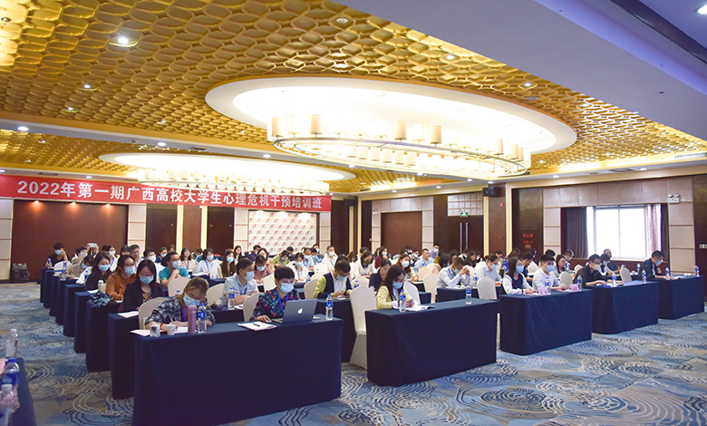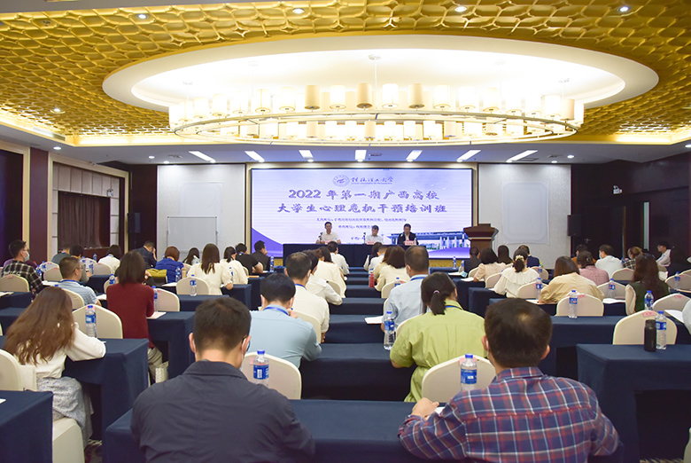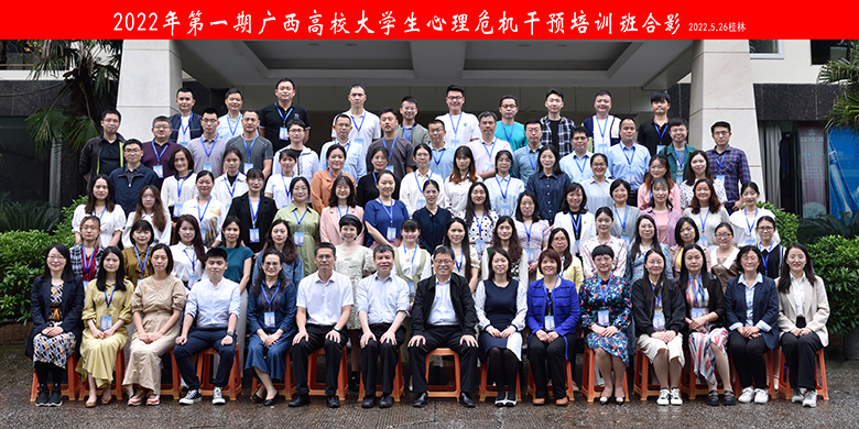 为进一步加强全区高校心理健康教育队伍建设,提高大学生心理危机预防与干预工作水平,5月25日—27日,由自治区党委教育工委、自治区教育厅主办,Beat365官网承办的2022年第一期广西高校大学生心理危机干预培训班在桂林举行。自治区教育厅二级巡视员、思想政治工作处处长、自治区党委教育工委宣传部部长赵益真,学校党委副书记吴志强出席开班仪式,来自全区高校79名学生心理健康教育与咨询中心主任和骨干教师参加培训班。