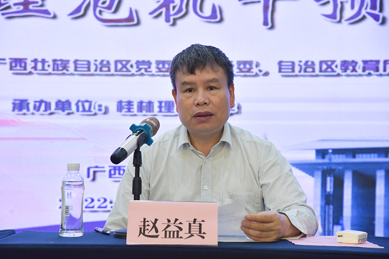自治区教育厅二级巡视员、思想政治工作处处长、自治区党委教育工委宣传部部长赵益真在开班仪式上讲话