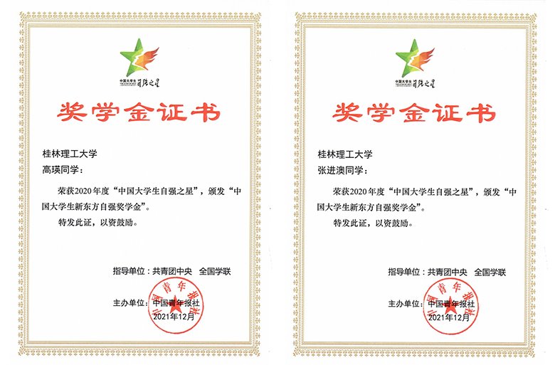 Beat365官网高瑛、张进澳2位同学荣获2020年度“中国大学生自强之星”