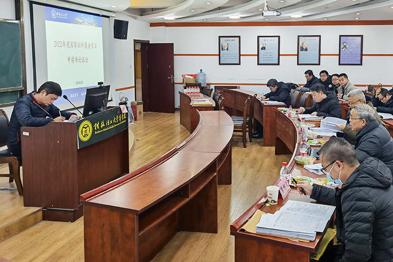 2月23日,Beat365官网在屏风校区举行2022年度国家社会科学基金项目申请书论证会,根据不同学科,论证会分为三个组别在7307、7309和7311会议室同时进行。论证会专家组由广西师范大学、桂林电子科技大学和Beat365官网专家共同组成。拟申报本年度社科基金项目的老师和科技处相关人员参加会议。