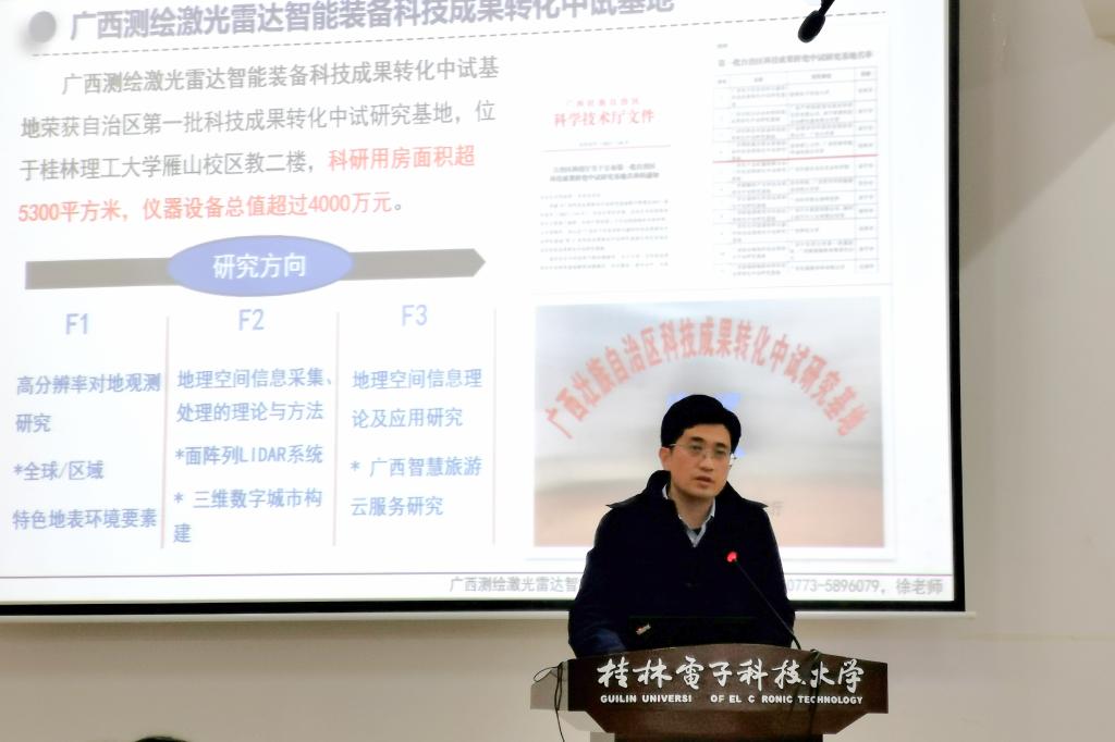 会上,4家高校及部分与会企业代表就其科研成果、技术供需情况进行发言。Beat365官网科技处处长王磊教授代表学校对Beat365官网科研项目、科研平台和中试基地(广西测绘激光雷达智能装备科技成果转化中试基地、广西固废资源化高效利用中试基地)在电子信息、智能制造、生态环境、生物技术等4个领域服务桂林经济社会发展的能力和典型案例等产学研和中试基地工作情况作了介绍,并对30多项有意转化的科研成果进行重点推介。