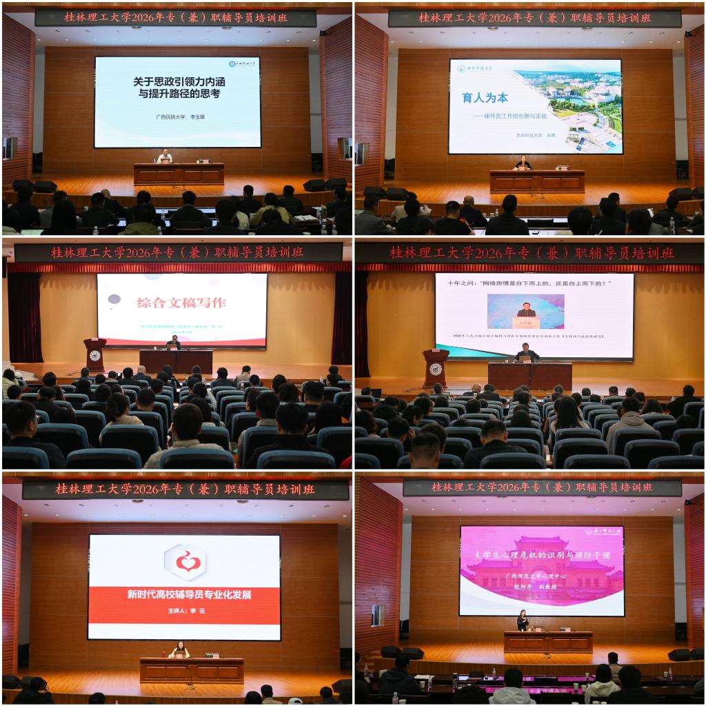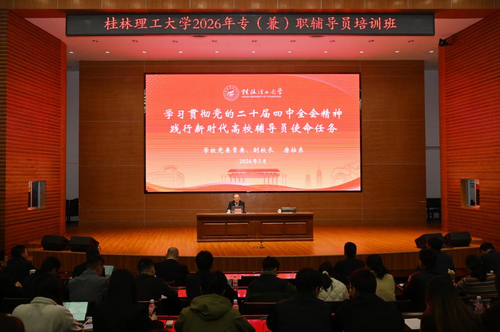 近日,Beat365官网采用线上线下相结合的方式开展2026年专(兼)职辅导员培训班。学校党委常委、副校长唐壮东作专题报告,全体学工干部及专(兼)职辅导员参加培训,南宁分校设视频分会场。