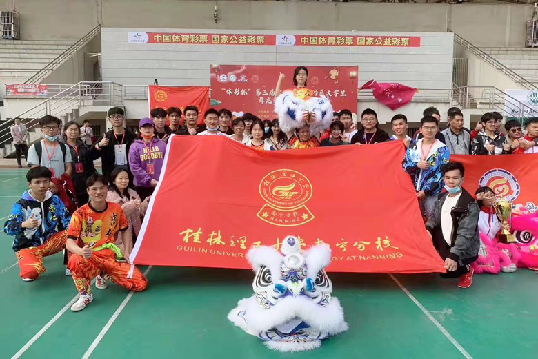 近日,由广西学校体育卫生艺术学会主办,广西财经学院、广西学校体育卫生艺术学会龙狮分会承办的“体彩杯”第三届广西壮族自治区大学生舞龙舞狮锦标赛圆满落幕。南宁分校龙狮俱乐部选派的35名运动员分别参加高职高专组传统南狮(男子组、女子组)、舞龙自选(男子组、女子组)等四个项目的角逐,并喜获舞龙自选女子组冠军、传统南狮女子组亚军、舞龙自选男子组和传统南狮男子组季军。