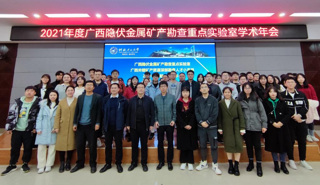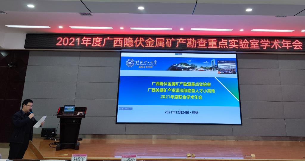 12月24日,广西隐伏金属矿产勘查重点实验室2021年度学术年会在雁山校区1号楼501学术报告厅顺利召开。会议由广西隐伏金属矿产勘查重点实验室主办,广西关键矿产资源深部勘查人才小高地协办,以“线上+线下”结合的方式进行。来自中国科学院、中国地质科学院、南京大学、北京大学、中国地质大学(北京)、中山大学、广西地质矿产勘查开发局、广西地质调查院和广西区域地质调查研究院等高校和单位的10余位区内外学术委员会专家委员线上出席会议,广西隐伏金属矿产勘查重点实验室相关人员和研究生90余人现场参加会议。
