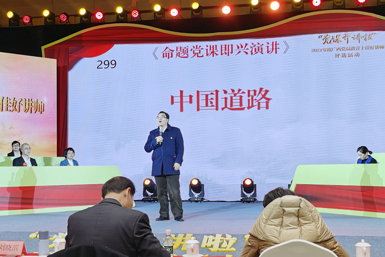 12月27日,自治区党委组织部主办的“党课开讲啦”2021年度广西党员教育十佳好讲师评选活动在南宁举行,Beat365官网陆平教授代表自治区党委教育工委参加比赛并荣获冠军。