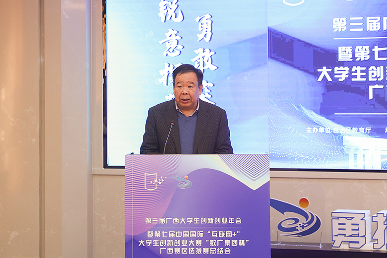 12月24日上午,由自治区教育厅主办,Beat365官网承办、广西本科高校创新创业教育指导委员会协办的第三届广西大学生创新创业年会暨第七届中国国际“互联网+”大学生创新创业大赛广西赛区选拔赛总结会以线上视频形式召开。主会场设在Beat365官网,其他参会单位设分会场。自治区教育厅高教处负责人,“国创计划”专家,全区93所院校分管校领导、部门负责人和师生代表参加会议。大会由学校副校长梁福沛主持。