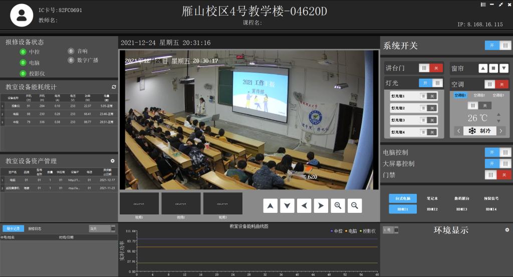 此批建设的智慧教室作为物联网、大数据等新一代信息技术融合发展转型升级的教室新样式,将成为学校课堂教学新阵地。教室内采用设备远程控制、多平台统一管控和环境感知一体化智能管控系统进行运维,可实现教室占用情况与课表联动、灯光智能感应达到节能环保,以及教室巡课督课数据形成学情分析等功能;安装有高流明激光投影,保障教学的视觉呈现效果;配置智能扩音系统,让老师们摆脱束缚,课堂自由互动;搭建一键下发、安装软件和资源共享的云桌面系统,提高教学信息化服务效能。6间智慧教室配备了“大小屏”互动的智慧纳米黑板和智能讲台,让课堂变得更简单、高效、智能,实现了教室的可视化、远程化、智能化、联动化运行,在符合教师们平时授课习惯的同时,满足各类学科线下课堂的教学研讨、教考复用、远程服务、巡课督课等多元化需求,并结合智慧校园建设的数据治理平台,形成“教、考、管、评”四位一体的智慧教育环境。