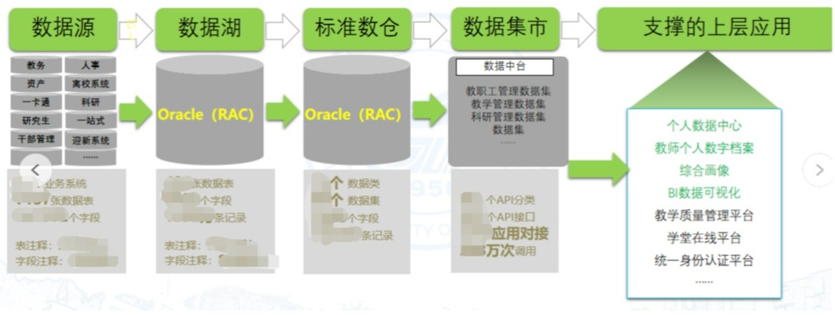 截至目前,数据治理建设项目已采集人事、教务、科研、资产、一卡通等10个业务系统元数据,清洗转换和存储,发布了11大类84个数据标准131个标准代码,涉及484多张数据表,6432多个数据项,制定数据治理制度规范文件5份,共享数据资源215个,构建了教职工、学生、教学、科研、一卡通等8大主题,提供“师生个人数据中心”“一表通系统”“教师个人主页系统”“领导驾驶舱”等多场景数据服务,从根本上解决数据孤岛问题,实现业务系统数据互联互通。