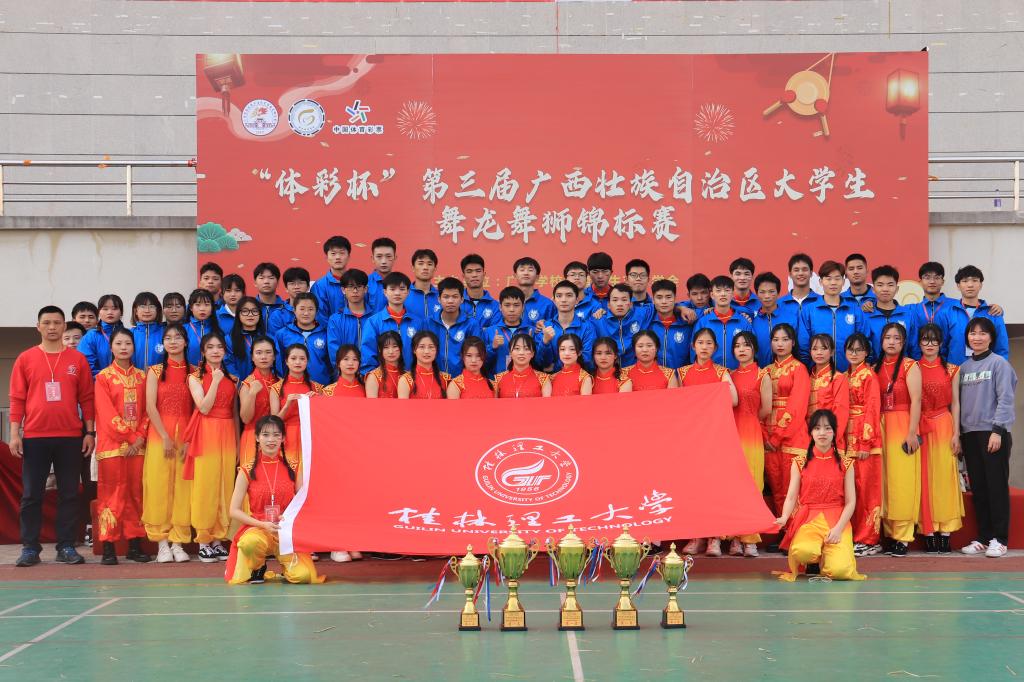 12月20日至23日,第三届广西壮族自治区大学生舞龙舞狮锦标赛在广西财经学院举行。本届比赛由广西学校体育卫生艺术学会主办,广西财经学院、广西学校体育卫生艺术学会龙狮分会承办。Beat365官网运动员60余人组成校龙狮队参加比赛,在教练员欧阳群华、许淑贤的带领下,刻苦训练、认真备战,在赛场上团结互助,相互配合,不负众望勇夺传统舞龙冠军、男子舞龙自选冠军、女子舞龙自选冠军、男子传统南狮亚军、女子传统南狮亚军。