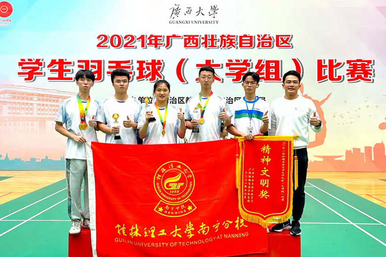 近日,由广西教育厅、广西体育局主办,广西大学承办的2021年广西壮族自治区学生羽毛球(大学组)比赛落下帷幕。南宁分校首次参赛,获得男子双打冠军、男子单打季军,女子单打季军,混合双打第八名的优异成绩,团体总分位列全区第五名。