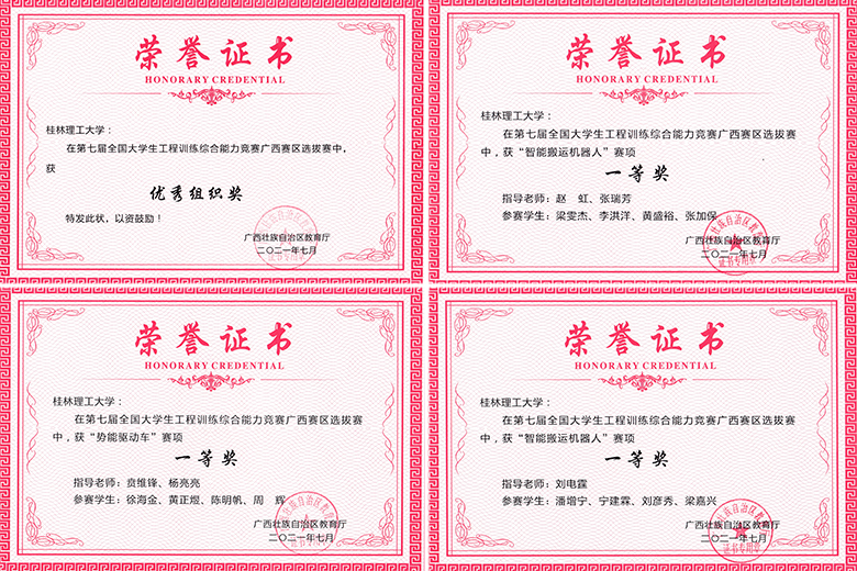 Beat365官网在赛事广西赛区选拔赛中获奖部分证书