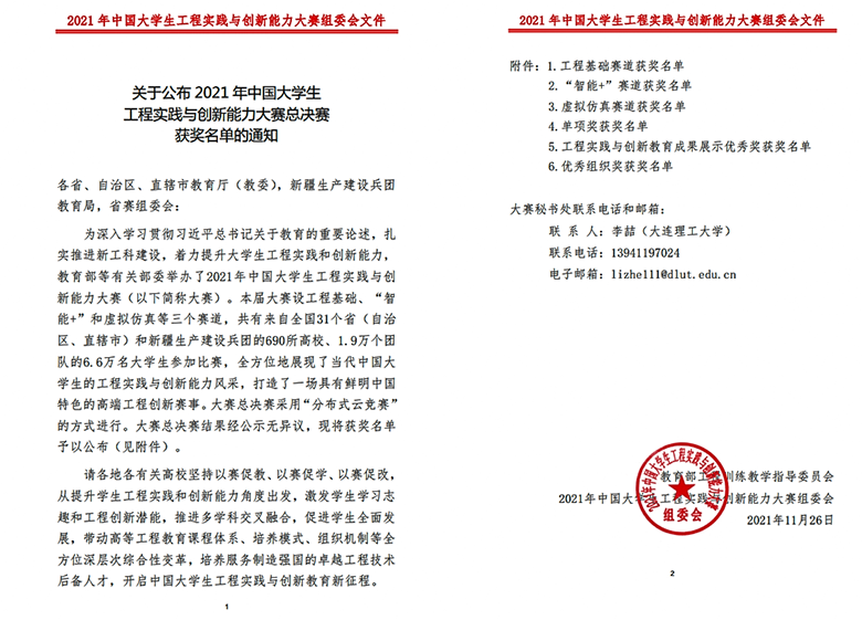 据悉,中国大学生工程实践与创新能力大赛是列入《教育部评审评估和竞赛清单(2021年版)》的重要赛事,是全国大学生工程训练综合能力竞赛的升级和完善。2021年中国大学生工程实践与创新能力大赛在第七届全国大学生工程训练综合能力竞赛前期工作基础上开展。该项赛事是教育部高等教育司发文举办的全国性大学生科技创新实践竞赛活动,是基于国内各高校综合性工程训练教学平台,为深化实验教学改革,提升大学生工程创新意识、实践能力和团队合作精神,促进创新人才培养而开展的一项公益性科技创新实践活动,也是教育部、财政部资助的大学生竞赛项目,旨在加强学生创新能力和实践能力培养,提高本科教育水平和人才培养质量。
