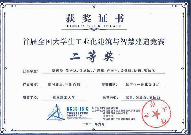 全国大学生工业化建筑与智慧建造竞赛由东南大学、中国建筑科学研究院有限公司倡导并牵头发起。竞赛由中国建筑学会担任指导单位,中国建筑学会工业化建筑学术委员会、中国建筑学会BIM分会、东南大学和中国建筑科学研究院有限公司联合主办。来自清华大学、同济大学、浙江大学、东南大学等170余所高等院校近500支队伍参加本届竞赛决逐,最终产生一等奖15项、二等奖39项、三等奖86项。