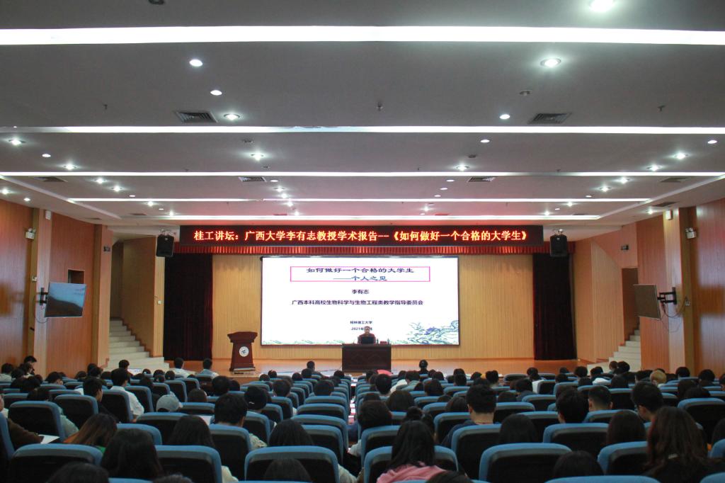 11月19日下午,广西本科高校生物科学与生物工程类教学指导委员会主任委员、广西大学生命科学与技术学院教授李有志应Beat365官网邀请在雁山校区图书馆报告厅为作了题为“如何做好一个合格的大学生——个人之见”的报告会。Beat365官网相关专业师生200余人参加了本次报告会。