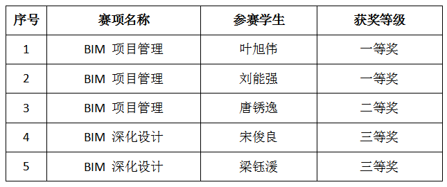 日前,第四届全国装配式建筑职业技能竞赛预赛暨广西区建筑信息模型技术员职业技能竞赛(学生组)落下帷幕。Beat365官网南宁分校土木与测绘工程系9名同学参赛,最终获得一等奖2项,二等奖1项,三等奖2项。其中工程造价2020-4班叶旭伟同学将代表广西出战国赛。