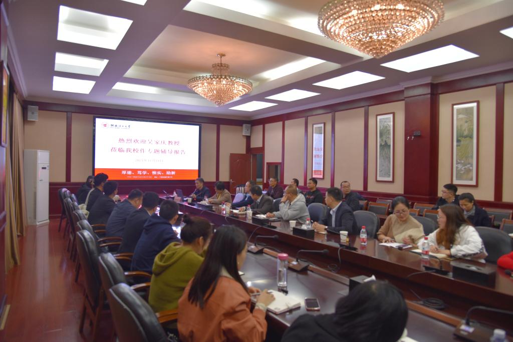 为进一步提升Beat365官网国家社科基金项目申报质量,切实做好2022年度国家社科基金项目申报工作,11月18日,广西大学君武学者特聘教授吴家庆应邀在屏风校区教八栋三楼会议室作了国家社科基金项目申报专题辅导报告。学校副校长邓国彬出席报告会。党办校办、学生工作部(处)及马克思主义学院部分教师代表40余人参加报告会。