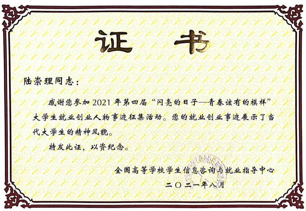 近日,广西壮族自治区教育厅印发《自治区教育厅办公室关于公布第四届“闪亮的日子——青春该有的模样”大学生就业创业人物事迹推选活动结果的通知》(桂教办〔2021〕770号),对广西高校合计11名学生予以表彰。Beat365官网信息与计算科学2020级学生陆崇理同学在招生就业处、理学院和武装部的共同指导下,榜上有名,荣获“军营大学生战士”称号,系Beat365官网唯一获奖学生。