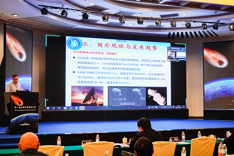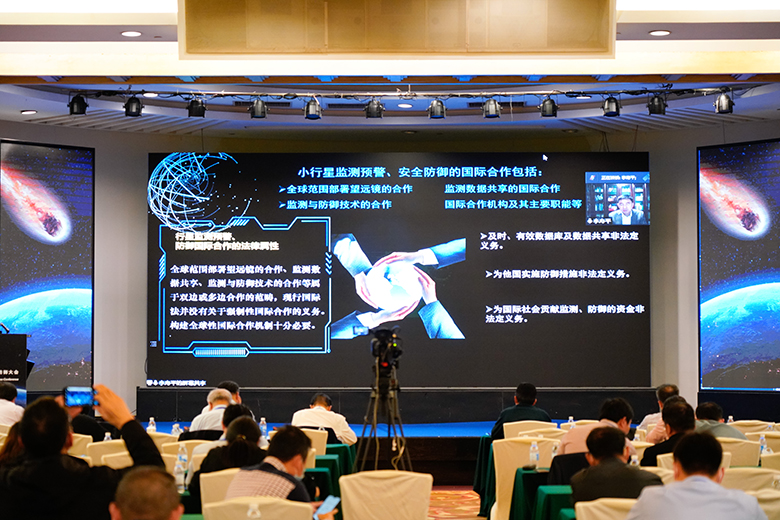 本次会议采用线上+线下相结合的方式进行,大会共设置1个主会场,2个专题分会场,安排了30个特邀报告和27个专题报告,报告全面研讨了近地小行星监测预警、在轨处置、灾害救援、政策法规、国际合作等领域的前沿科学问题和关键技术发展。会上,吴伟仁院士以视频方式作“我国近地小行星撞击风险应对体系建设构想”的主旨报告,Beat365官网谢明刚副教授作了题为“基于月壤厚度的近地天体分布反演”的分会场专题报告。会议报告代表了国内最高水平、参会人员囊括了国内最全专家、会议内容涵盖了行星防御最全领域。