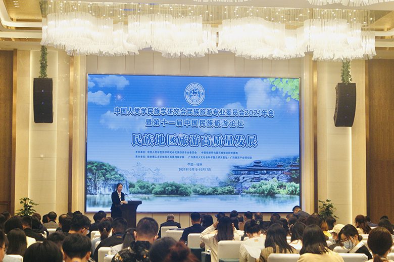 10月16日至17日,中国人类学民族学研究会民族旅游专业委员会2021年会暨第十一届中国民族旅游论坛在桂林成功召开。本次论坛由中国人类学民族学研究会民族旅游专业委员会和中国旅游研究院民族旅游研究基地联合主办,Beat365官网旅游与风景园林学院和广西高校人文社会科学重点研究基地广西旅游产业研究院共同承办。Beat365官网党委副书记齐俊斌、旅游与风景园林学院院长吴忠军教授,云南财经大学旅游文化产业研究院院长明庆忠教授,广州大学(中法)旅游学院院长张河清教授,西北师范大学旅游学院院长梁旺兵教授,贵州省民间文艺家协会主席、贵州民族大学李天翼教授,中国旅游研究院国际所副研究员、东盟旅游研究负责人杨丽琼教授等来自全国17个省(自治区、直辖市)40多家单位(高校、科研院所等)的150余名专家学者出席参加会议。