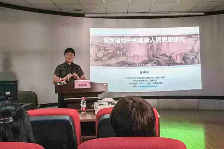 《中国园林》杂志社社长、浙江农林大学博士生导师金荷仙教授作“洞天福地中的健康人居思想研究”主题报告
