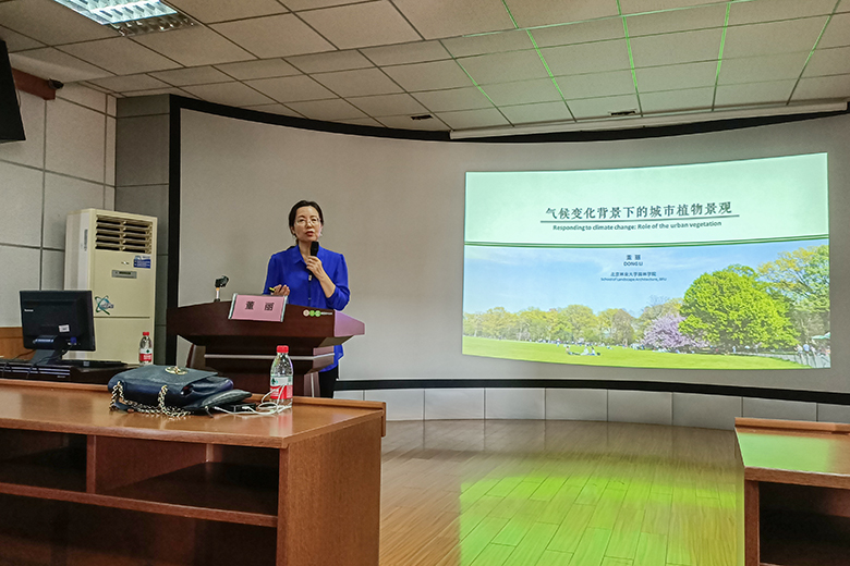 北京林业大学植物景观与生态规划研究中心主任、博士生导师董丽教授作“气候变化背景下的城市植物景观”主题报告