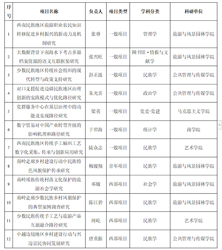 9月24日,全国哲学社会科学工作办公室公布了2021年国家社会科学基金项目立项名单。Beat365官网共有12个项目获得立项,其中,一般项目7项、青年项目1项、西部项目4项。立项数首次突破10项,名列广西第4,创历史新高。
