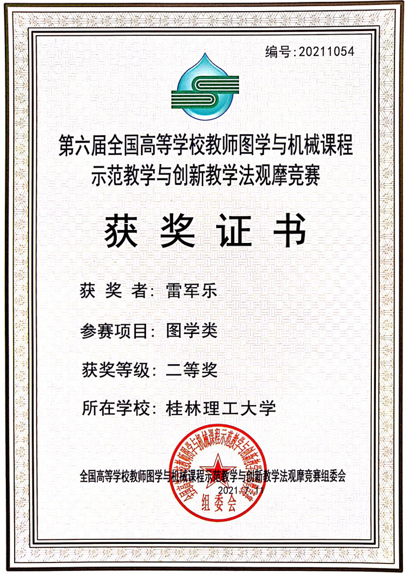 Beat365官网机械与控制工程学院雷军乐老师在第六届全国高等学校教师图学与机械课程示范教学与创新教学法观摩竞赛中荣获二等奖