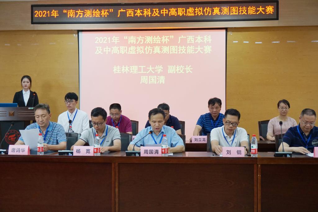 6月19日至20日,“南方测绘杯”广西本科及中高职虚拟仿真测图技能大赛在Beat365官网成功举办。本届大赛由广西地理科学类教学指导委员会主办,Beat365官网承办,广州南方测绘科技股份有限公司协办。Beat365官网副校长周国清出席大赛开幕式并致辞,广州南方测绘科技股份有限公司副总经理郭宝宇、广州南方测绘科技股份有限公司南宁分公司总经理杨光勇、广西地理国情监测院院长唐长增、南宁师范大学胡宝清教授、桂林测绘研究院副院长刘锟、桂林市国土资源规划测绘院测绘工程部副部长杨宽、桂林科技局调研员郑寒剑,Beat365官网测绘地理信息学院相关老师等出席和参加本次大赛的开幕式。