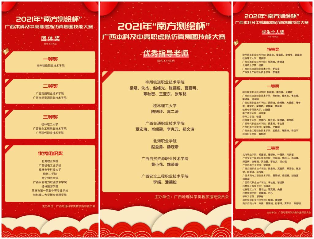 大赛以在线比赛的方式进行,共有来自15个高校的46支队伍、190多名学生参赛,参赛选手分别在桂林、南宁、柳州、北海、梧州、玉林、河池等地同时进行比拼,开创了广西区测绘虚拟仿真技能大赛的新记录。大赛为广西区内本科、职业院校大学生交流学习心得和互相切磋实践技能提供了舞台,也为展示各校测绘地理信息专业实践教学成果提供了平台。