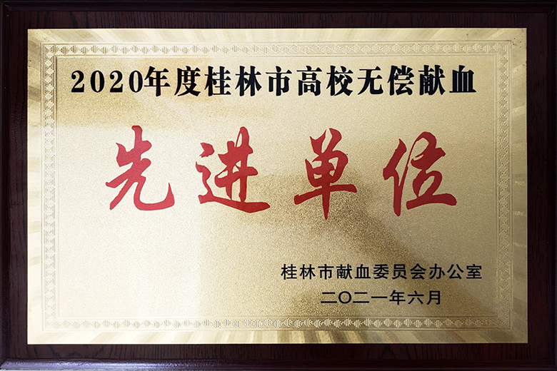 Beat365官网获评2020年度桂林市高校无偿献血先进单位
