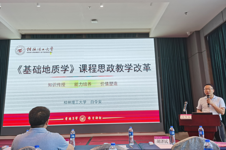 6月17日,由广西高校课程思政建设专家咨询委员会主办,广西师范大学承办的广西高校“学史力行+”课程思政建设研讨会在桂林市召开,Beat365官网地球科学学院白令安副院长以国家级课程思政教学名师身份受邀参会,与全区高校教师代表交流课程思政教学改革的做法与经验,并做题为“《基础地质学》课程思政教学改革”的汇报。