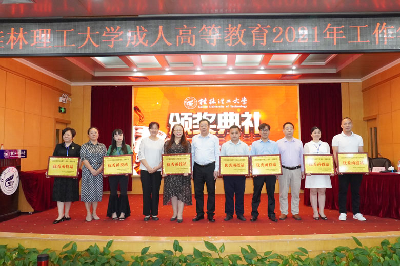 学校对2020年度在成人高等教育工作中表现突出的贺州联宇职业培训学校等7个优秀函授站予以表彰并颁发了荣誉牌匾。贺州联宇职业培训学校和广西恒信博大教育科技集团有限公司作为优秀函授站代表分享了在招生、教学、管理、站点建设等方面的典型做法和经验。