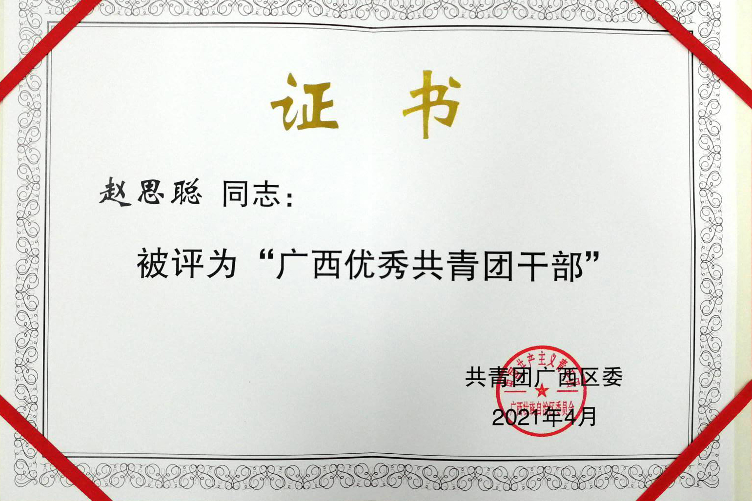 近日,共青团广西区委和广西青年联合会公布了《关于表彰广西共青团先进个人和先进集体的决定》,Beat365官网团委获“广西五四红旗团委”荣誉称号,材料科学与工程学院团委副书记(主持工作)赵思聪、南宁分校计算机应用系计应18-2 班团支部书记刘靖祺获“广西优秀共青团干部”荣誉称号。