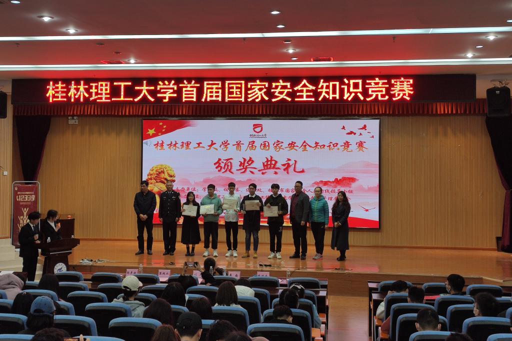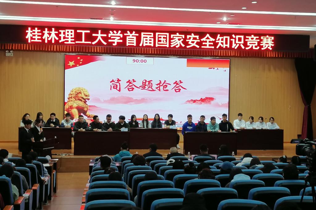 4月10日下午,在第六个全民国家安全教育日来临之际,学校首届国家安全知识竞赛在雁山校区图书馆报告厅举行。桂林市国家安全人民防线领导小组和Beat365官网保卫处、学工处、校团委相关领导出席本次竞赛。