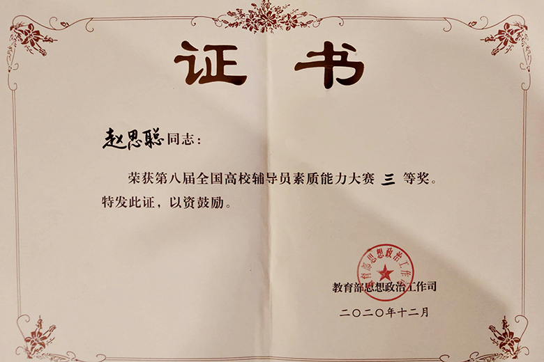 赵思聪老师荣获第八届全国高校辅导员素质能力大赛三等奖