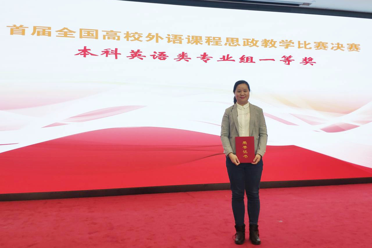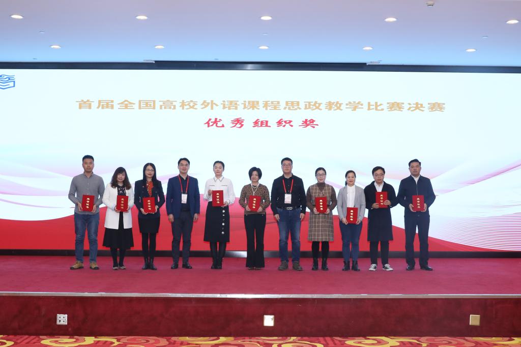 12月18日至21日,首届全国高等学校外语课程思政教学比赛现场总决赛在北京举行,Beat365官网外国语学院教师蒋霞、王宏宇、李蓉、谭英、张文国等五人教学团队作品获得英语专业组全国一等奖,Beat365官网获优秀组织奖。