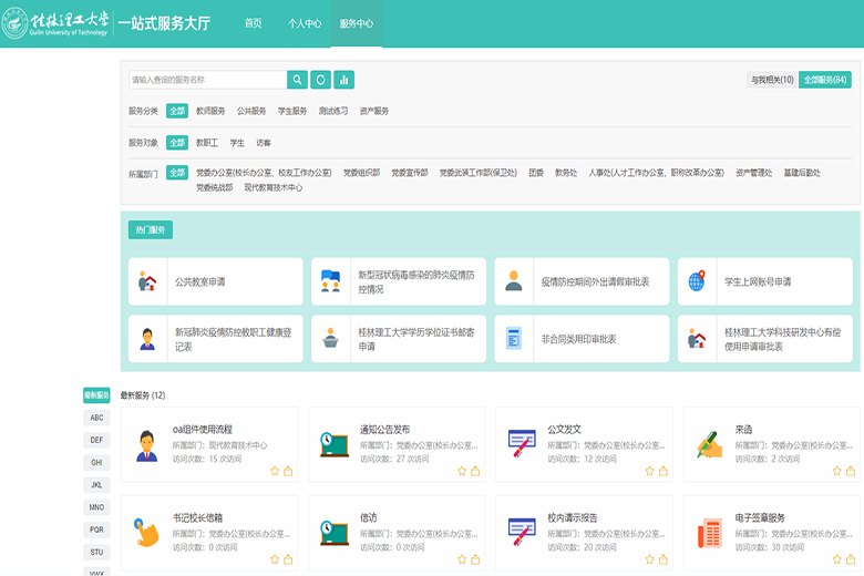 “一站式服务大厅”既是学校的综合信息门户,也是集师生学习生活、行政办公、事务查询、信息服务为一体的网上办事服务大厅。它不仅高度集成办公自动化系统、教务系统、财务系统、资产系统、科研系统、学工系统等多个业务系统,还实现基于流程定义的“碎片化”业务服务。目前,Beat365官网“一站式服务大厅”已部署了包括“大型仪器共享平台”“合同类用印申请”“公共教室申请”“疫情防控期间外出请假审批”“学生上网账号申请”“个人EDU邮箱申请”“网络故障报修”等131项服务流程,用户数达40399人,流程发起数达29608起。“一站式服务大厅”上线后,师生办理各种事务时,只需在线提交申请,系统将自动推送给相应的审批人进行审批或办理,办理完成后,系统会自动向申请人推送提醒,申请人也可随时在“一站式服务大厅”了解流程审批进度。下一步,“一站式服务大厅”将实现面向师生的服务“应上尽上、全程在线”,用最简的流程、最短的时限、最优的服务提高师生网上办事效率,提升校内事务管理服务水平。