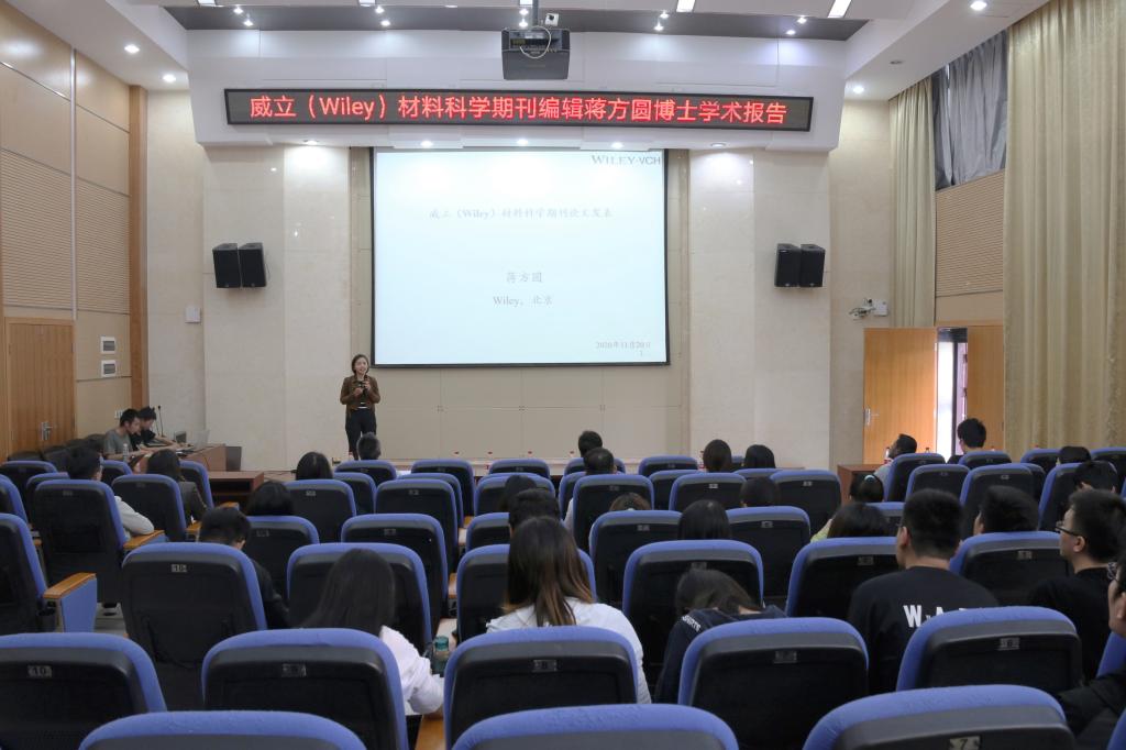 11月20日下午,威立(Wiley)材料科学期刊编辑蒋方圆博士应邀到Beat365官网讲学,作了题为“威立(Wiley)材料科学期刊论文发表”的报告。Beat365官网相关专业师生参加了此次报告会。