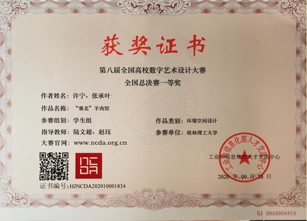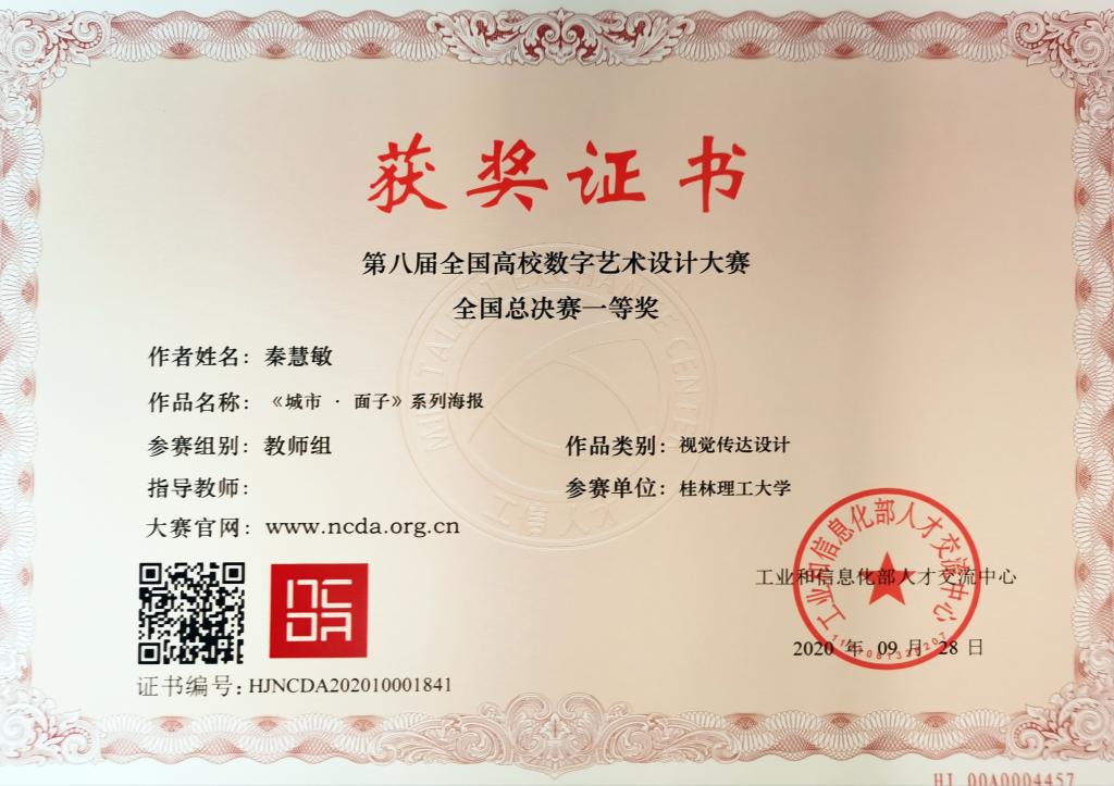 11月14日,由工业和信息化部人才交流中心主办的“未来设计师”杯第八届全国高校数字艺术设计大赛颁奖典礼在浙江嘉兴举办。Beat365官网荣获“杰出贡献奖”。艺术学院师生作品获国家级奖项27项,其中,秦慧敏老师获得全国教师组一等奖,赵珏、陆文超等14位老师荣获优秀指导老师奖,许宁、谢浩杰等18位同学获得全国学生组一等奖2项,二等奖3项,三等奖6项,优秀奖1项。