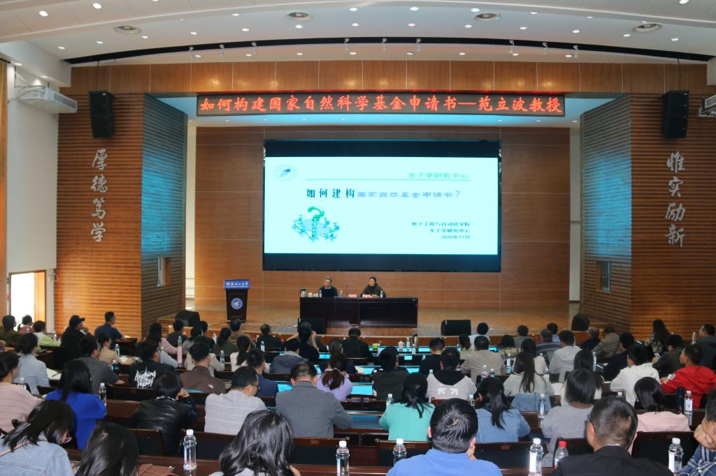 11月10日下午,桂林电子科技大学特聘教授、广西八桂学者、中国光学学会纤维与集成光学专业委员会副主任苑立波教授在Beat365官网屏风校区图书馆报告厅作题为“如何建构国家自然基金申请书”的学术讲座。讲座由学校副校长王玫主持,拟申报2021年度国家自然科学基金的200余位教师和科技处相关人员参加了讲座。